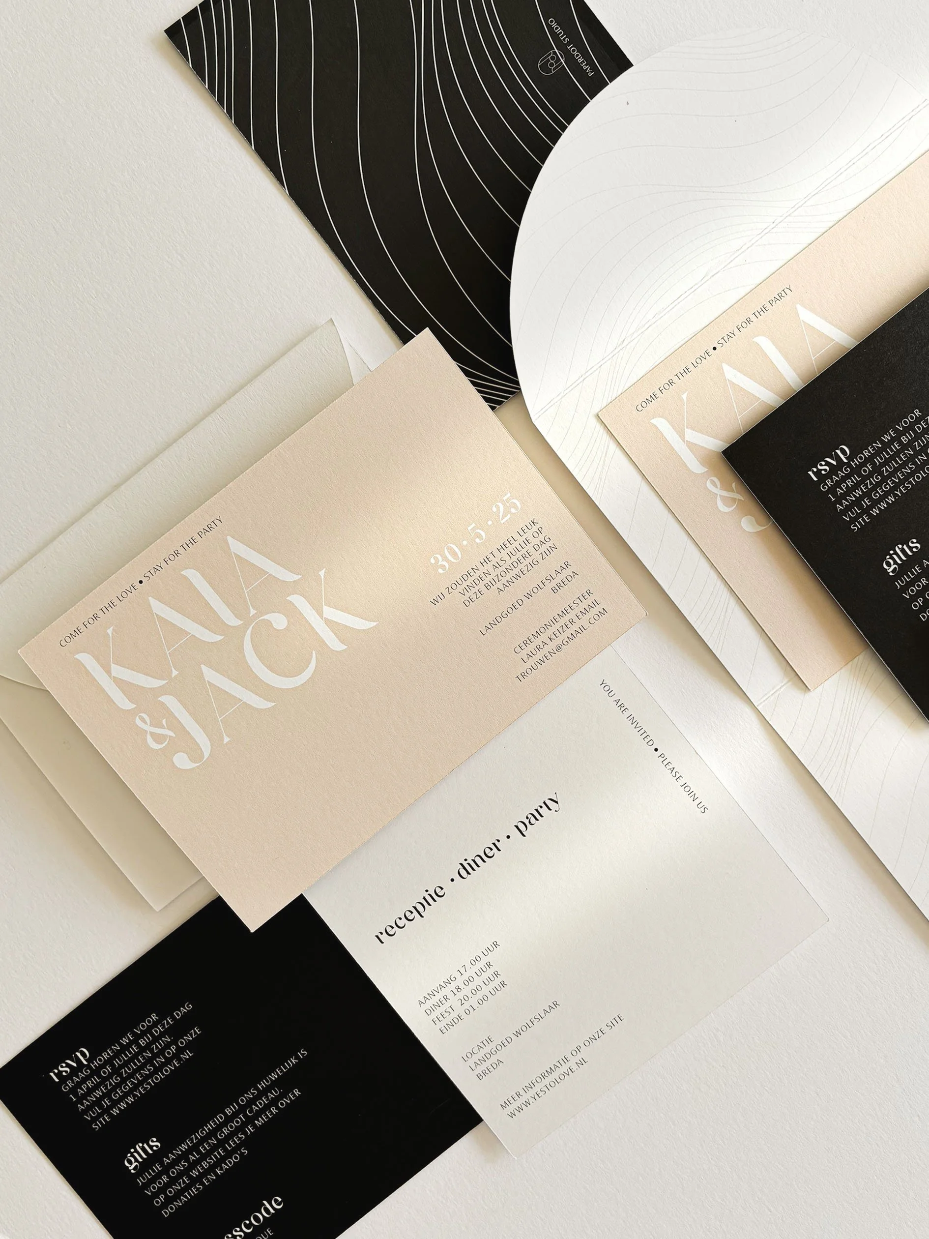 Paperdot studio biedt moderne semi-custom ontwerpen aan die aan te passen zijn zodat ze een match zijn met de styling van jullie bijzondere dag.